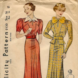 1940s Lovely Two Pc Dress Pattern Butterick 4539 Flared Skirt Peplum Top Pretty Style Details Bust 32 Vintage Sewing Pattern